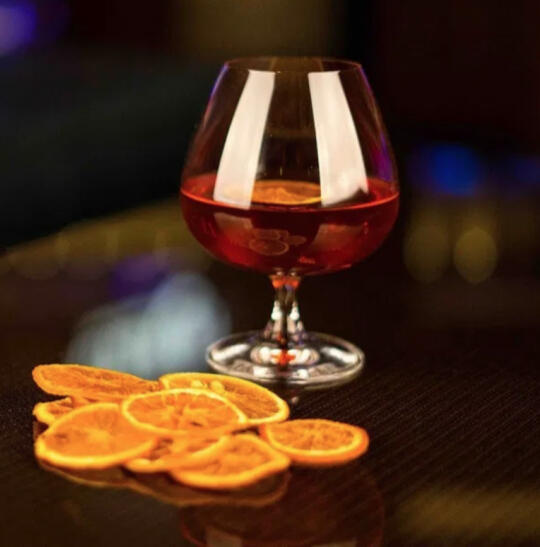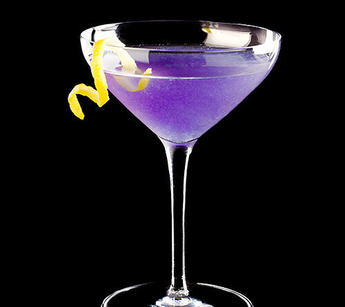 This drink boasts notes of O'Ghomorro Berry and Rolanberry liqueur, mixed with only the best selection of cognac. Served in a snifter and garnished with the dark petals of an edible black violet.