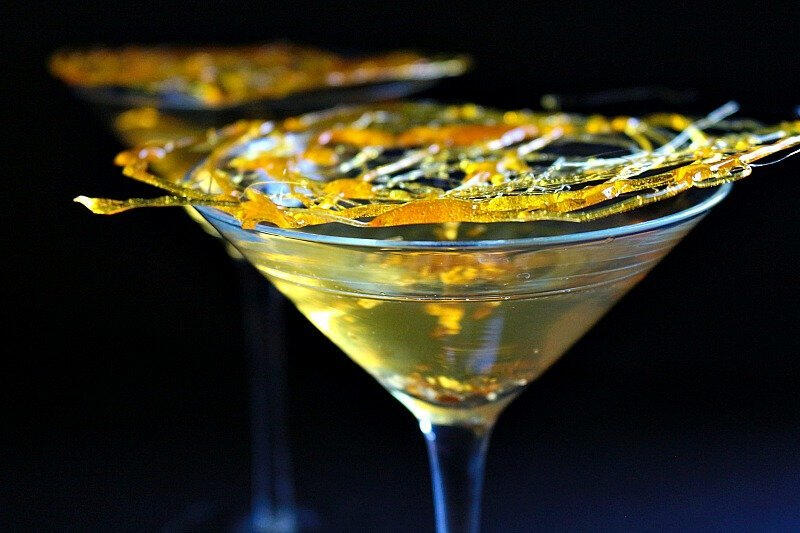 This drink is a little slice of heaven - if gold is your desire. Doman gin mixes deliciously with golden liqueur and a smooth vermouth to make a delightfully sinful golden martini. Garnished with slices of Thavnairian golden plums, dusted with edible gold, and finished off with a twill of spun sugar - it's a visual impact to behold.