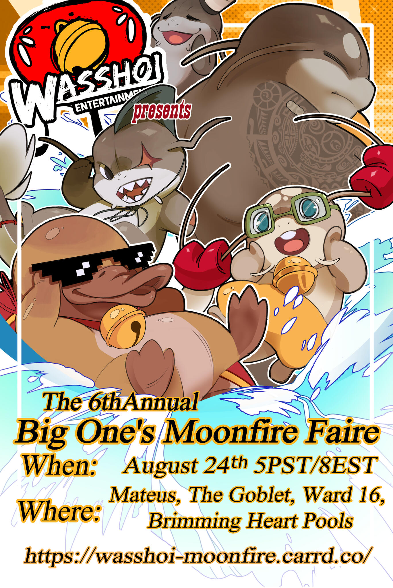 Wasshoi Entertainment and all of our Namazu companions are excited to once again bring you all the games, food, and fun that comes with The 5th Annual Big One's Moonfire Faire!Smash some poor innocent melons.Dunk a man that might try to kill you for it and watch as his friends and family laugh at his misery!Whatever flops your fish, we look forward to seeing you there!